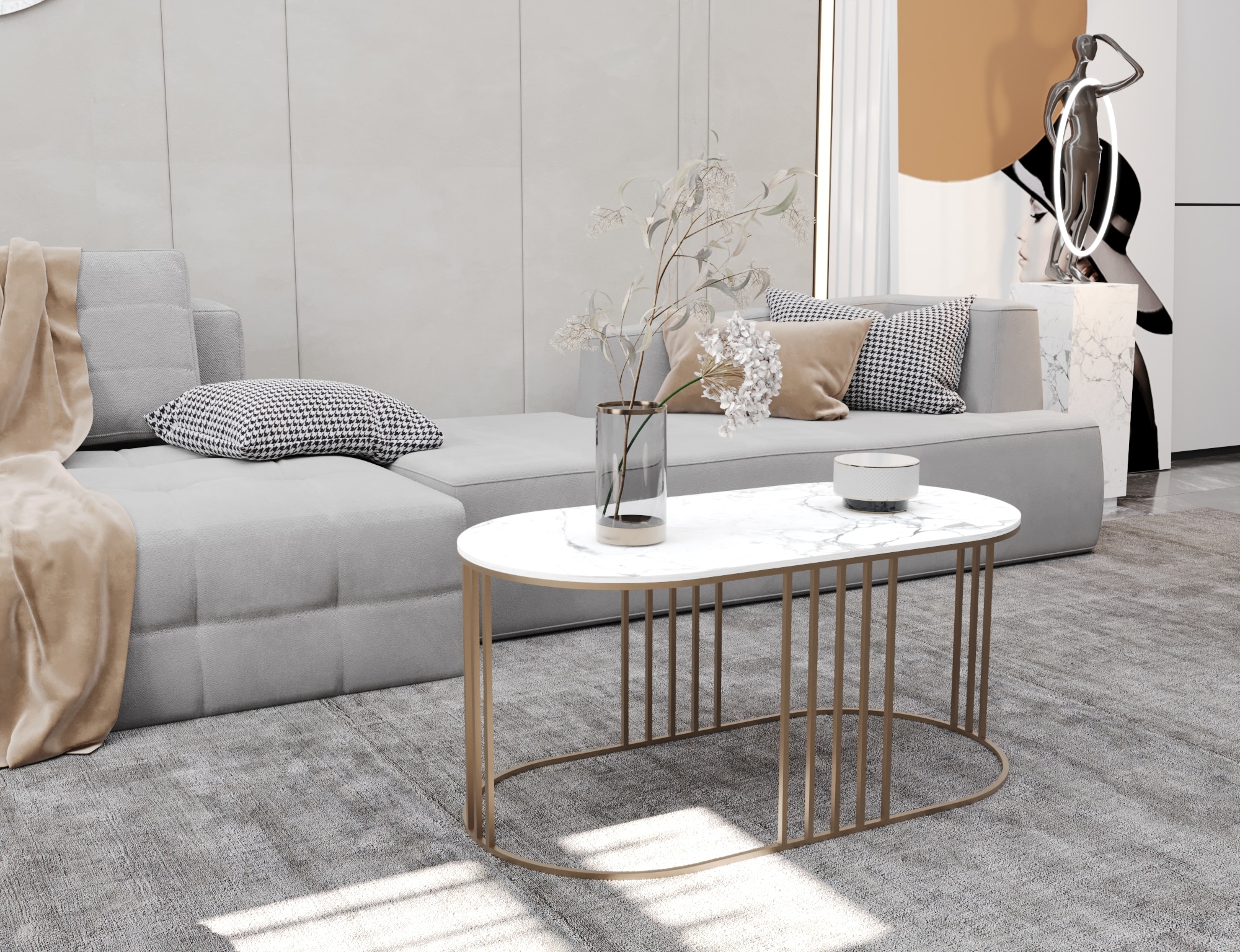 ترابيزة تناسق ترابيزة انتريه مودرن تجمع بين التصميم العصري والأنيق، مستطيلة الشكل يتخذ أطرفها أشكال أنصاف دوائر، الترابيزة مصنوعة من الاستيل المطلي بدهان الكتروستاتيك المقاوم للصدأ، وسطها مصنوعة من الرخام الأبيض.