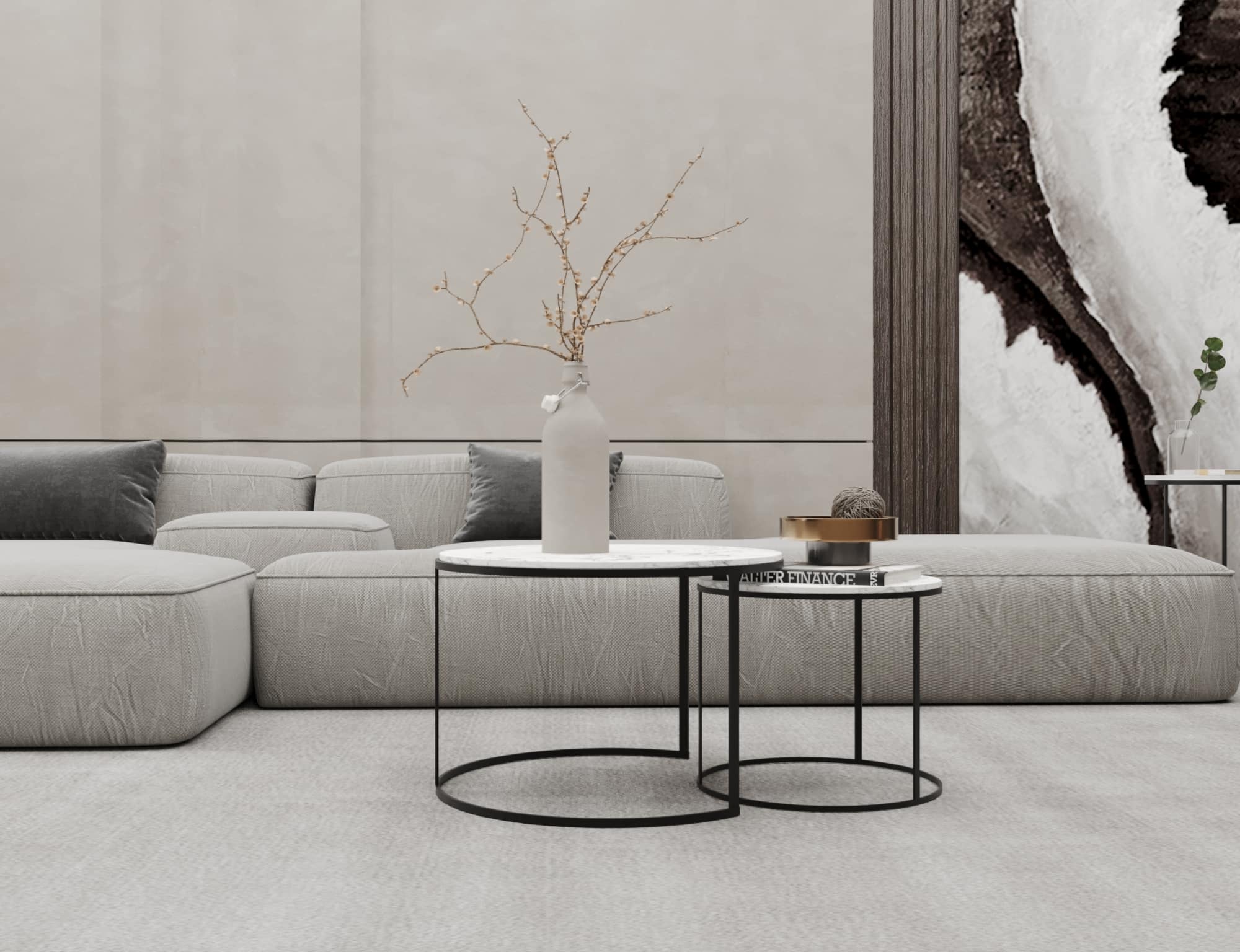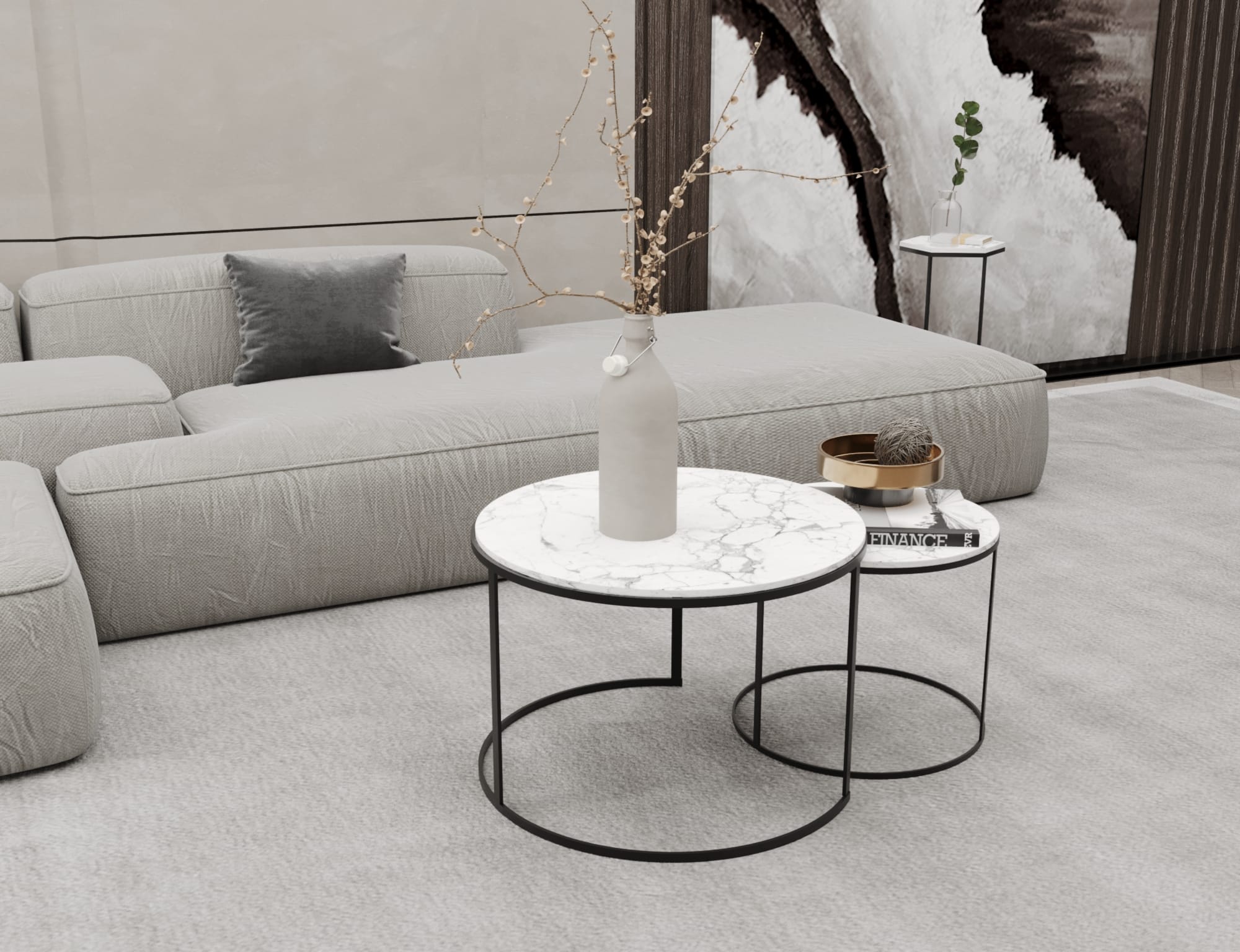 اضف لمسة أنيقة وعصرية لديكور منزلك باقتناء ترابيزة انتريه مودرن مكونة من قطعتين دائريتين متداخلتين بتصميم مميز يضفي لمسة جمالية عصرية على ديكور المكان، حيث يمكن استخدام القطعتين معًا، ويمكن فصلهما لتتناسب مع المساحات المختلفة.