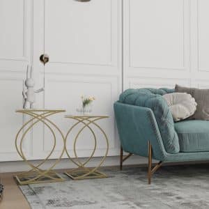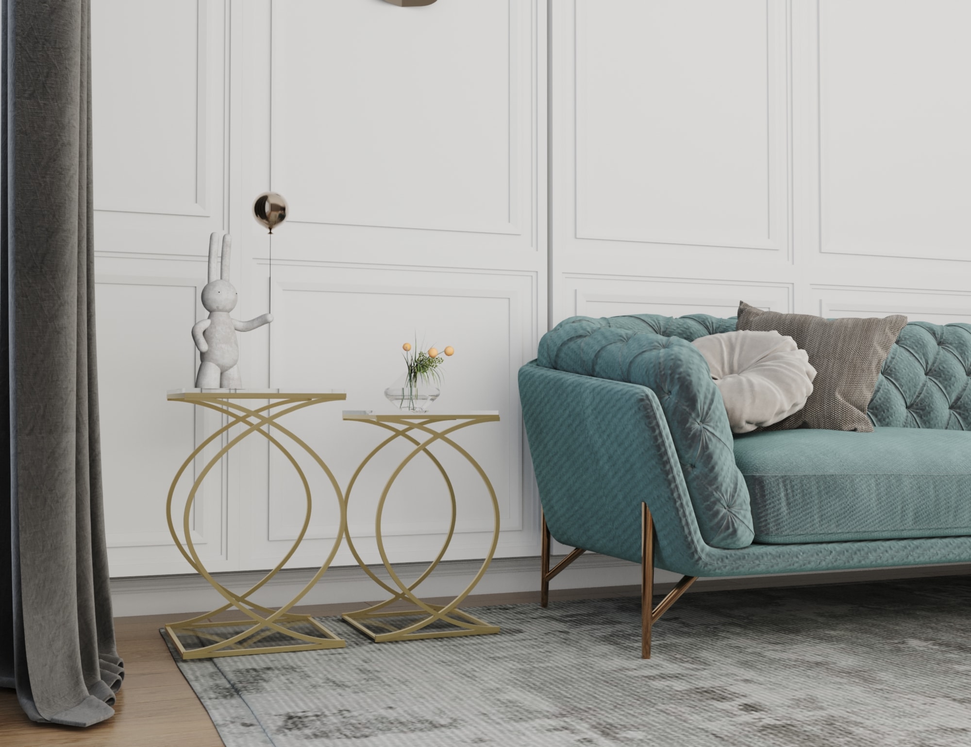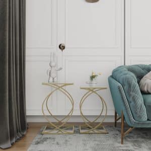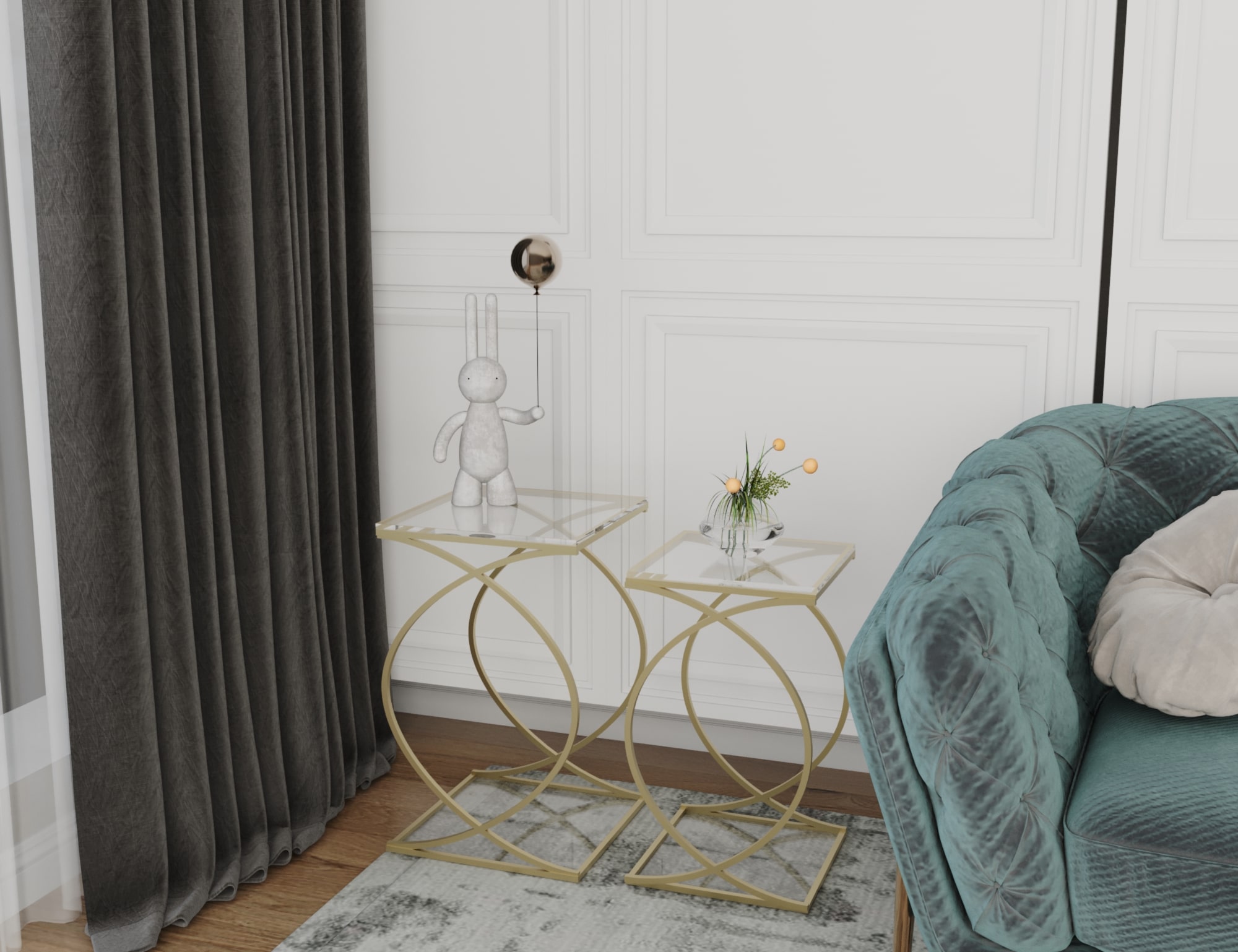 ترابيزة جانبية مودرن متداخلة مكونة من قطعتين، تتميز بتصميمها الأنيق المتناسب مع الأذواق الرفيعة، الذي يعطي المكان طابع من الجمال الخاص، الترابيزة مصنوعة من الحديد المطلي بدهان الكتروستاتيك المقاوم للصدأ والرطوبة، أما السطح فمصنوع من الزجاج عالي المتانة.