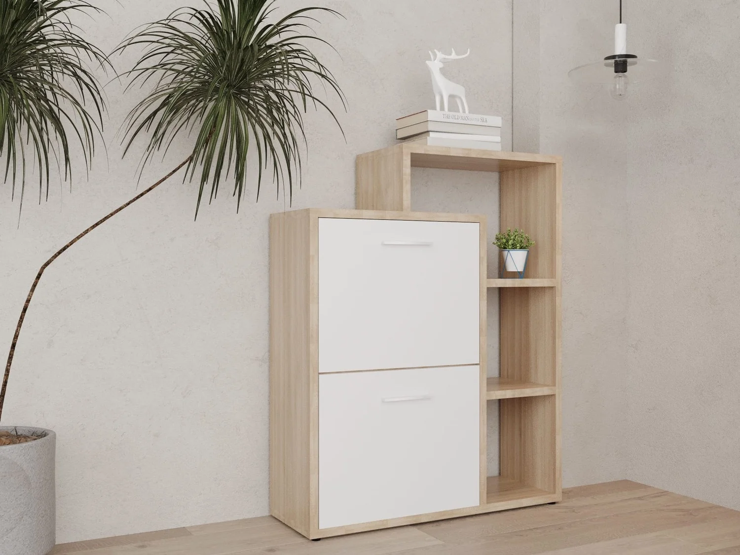 أضف لأثاث منزلك قطعة عصرية تخلصك من فوضى الأحذية، مع جزامة سمارت جزامة مودرن من خشب ام دي اف عالي المتانة مزودة بـ 2 درج قلاب ورفين، تتمثل ألوان الجذامة في اللونين الأبيض والبيج.