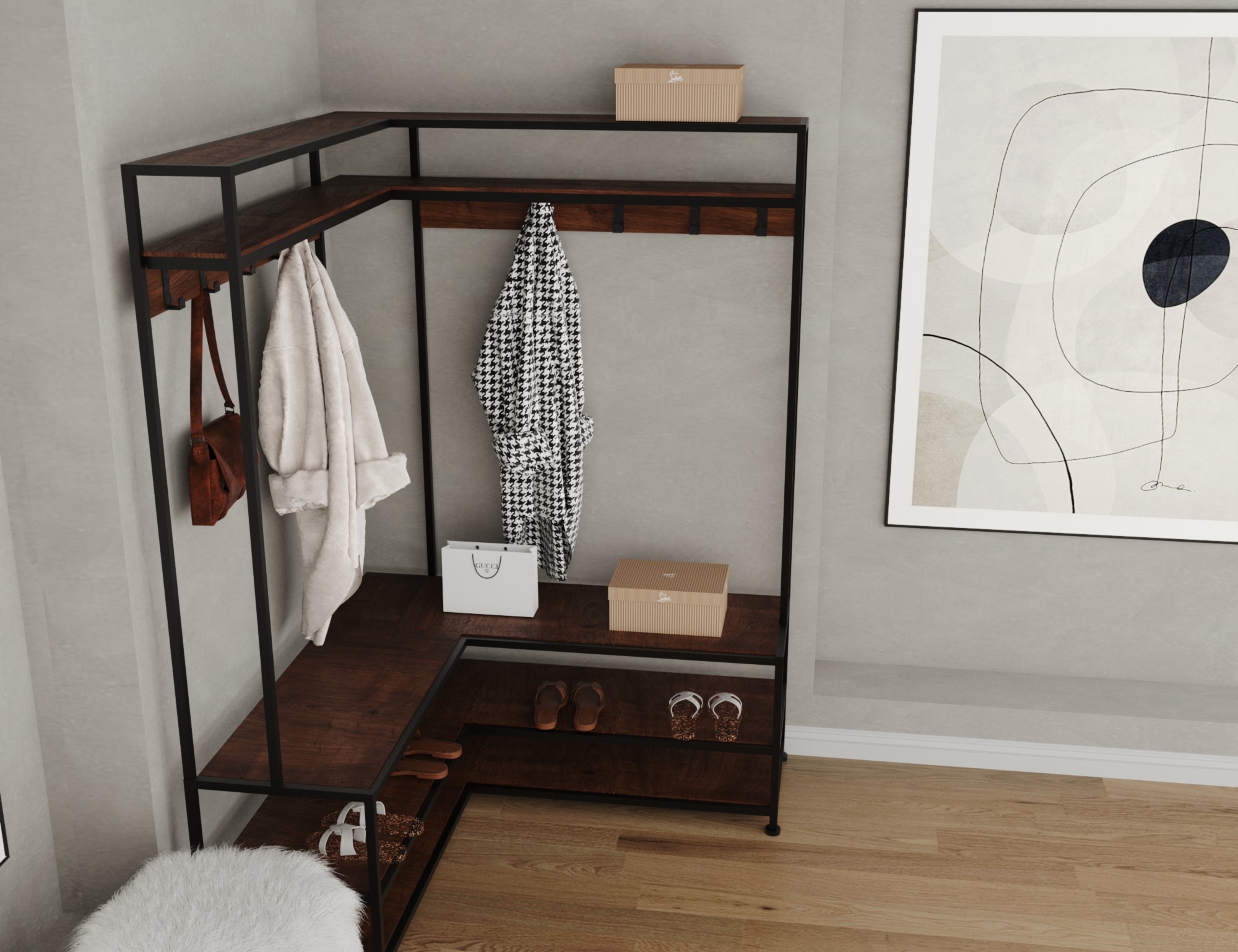 تخلص من فوضى الأحذية مع جزامة حديد ماكس كورنر، تتكون جزامة ماكس مورنر من أرفف عدة تتسع لعدد كبير من الأحذية كما إنها مزودة بشماعة فيمكن استخدامها لتعليق ملابس الخروج والحقائب.