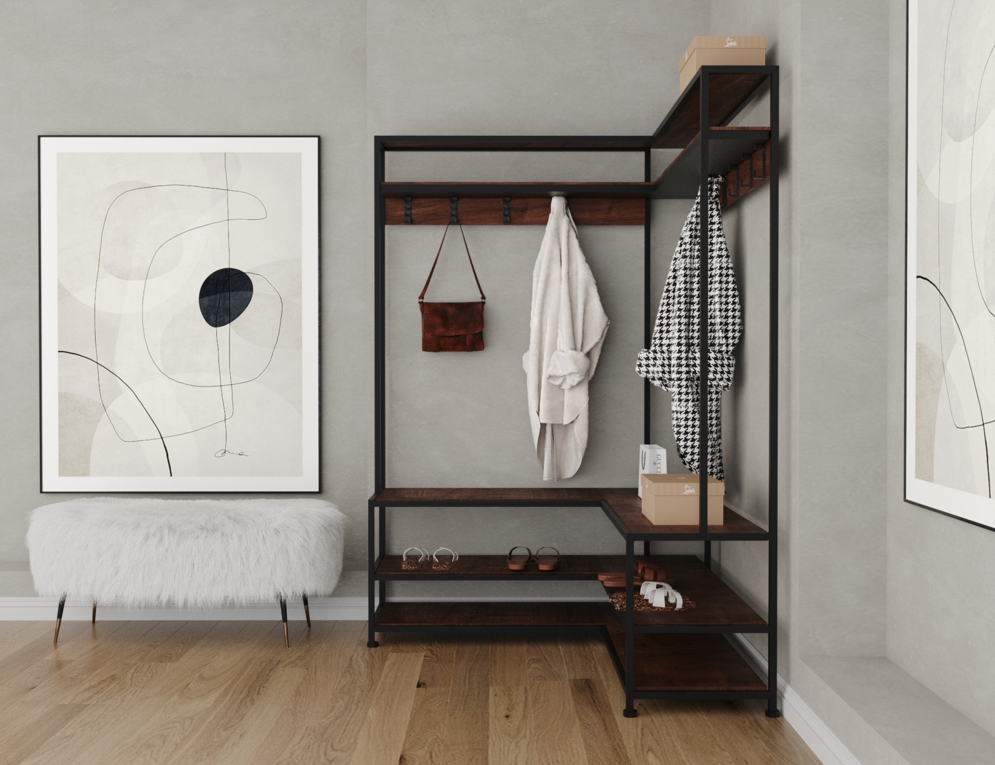 جزامة مودرن خشب من قطعتين بـ 3 أرفف وشماعة