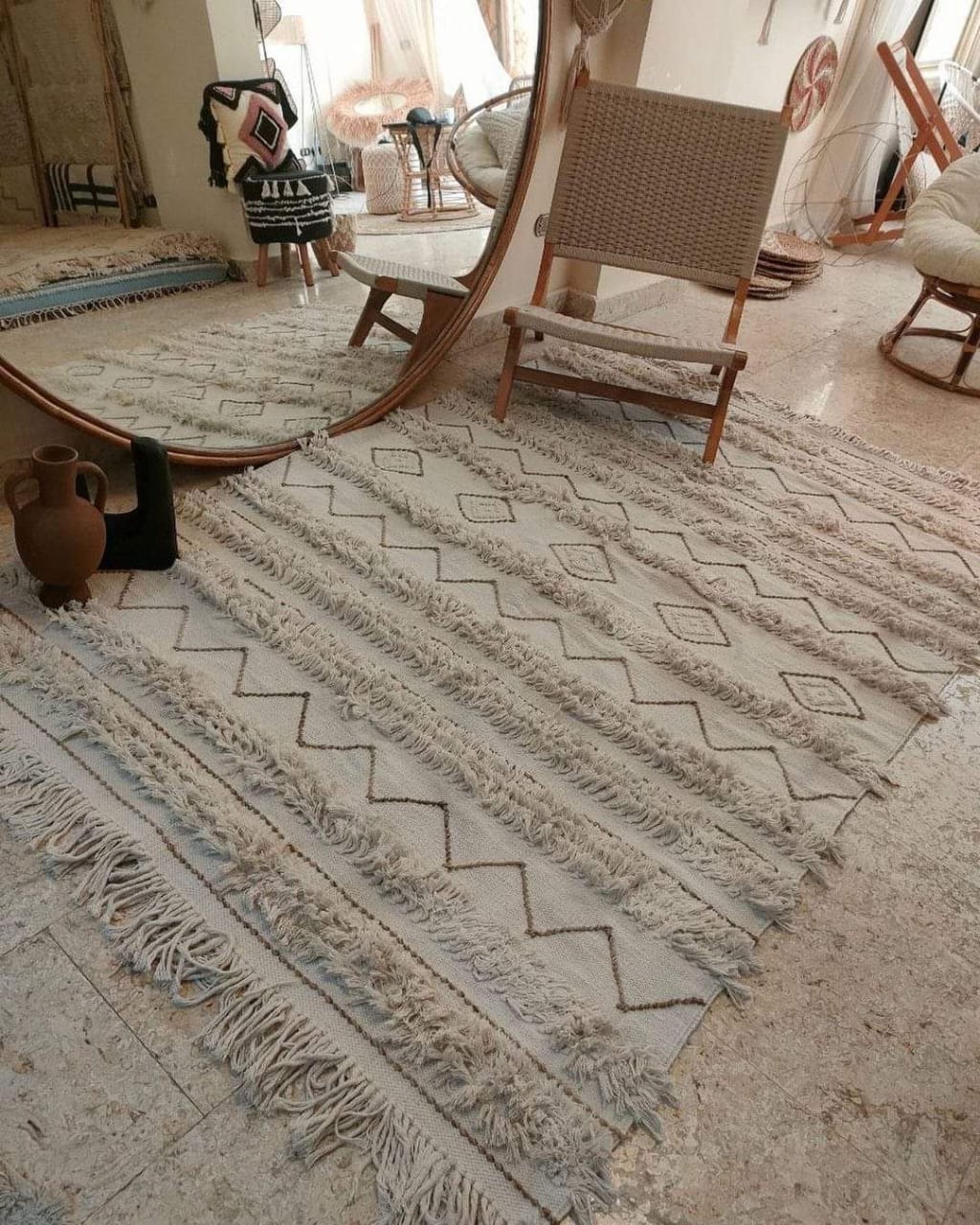 سجادة صناعة يدوية من الصوف الخالص – لون بيج