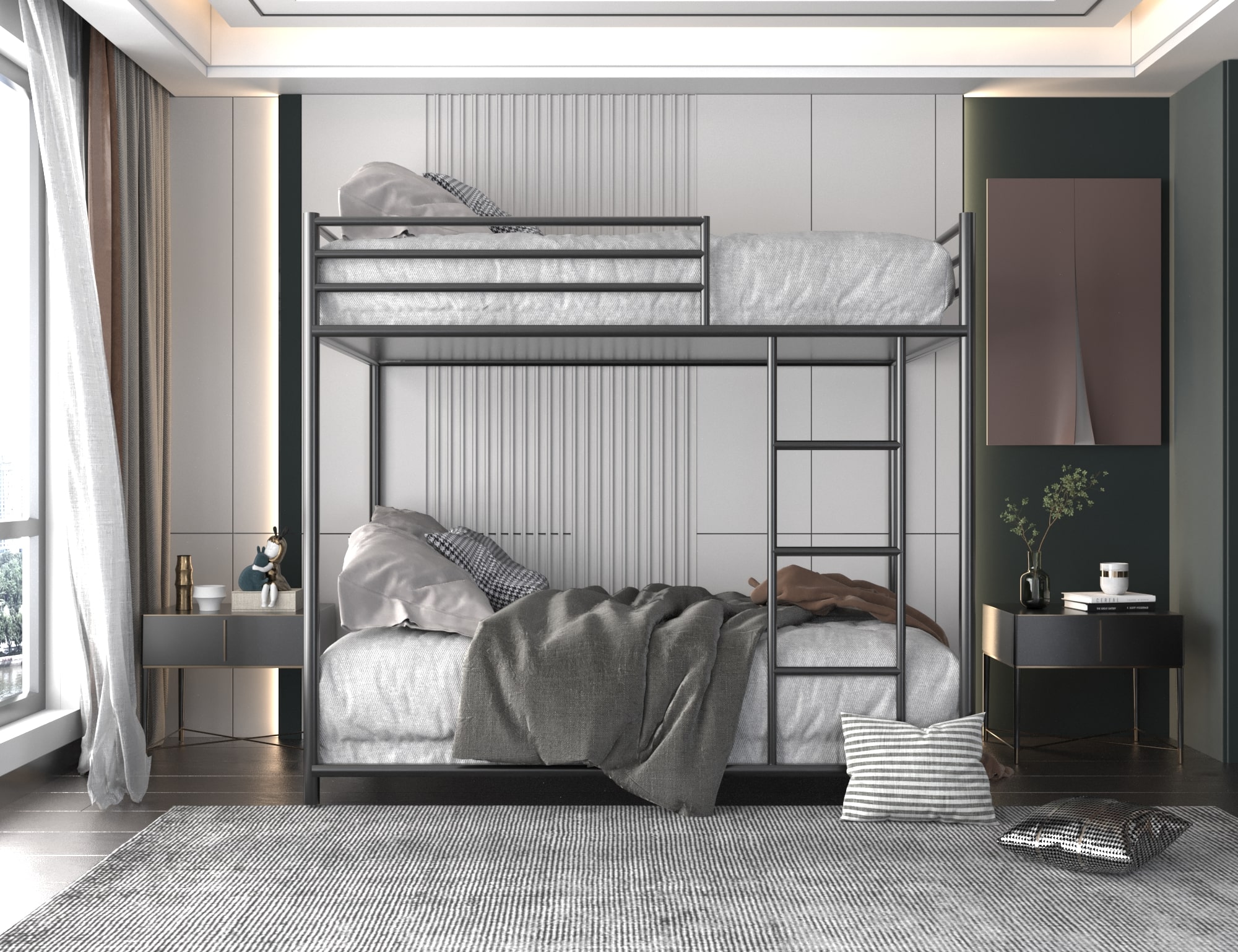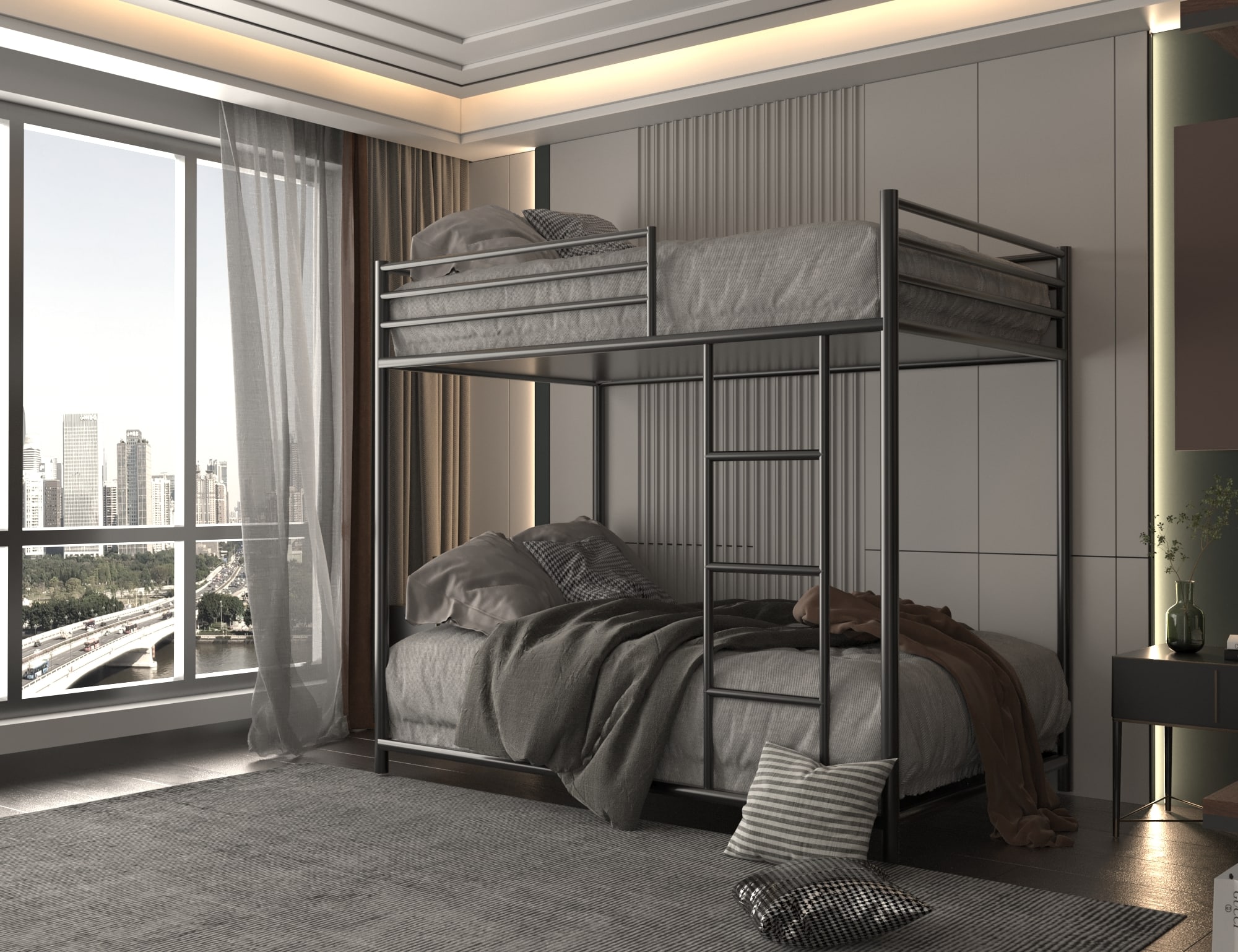 سرير توين أب مودرن، سرير يجمع بين التصميم العصري الجذاب وعملية الاستخدام والجودة العالية، يتكون السرير من دورين مصممين بشكل جذاب، يمكن استخدامه في المساحات الضيقة مع منحها مظهر أنيق.