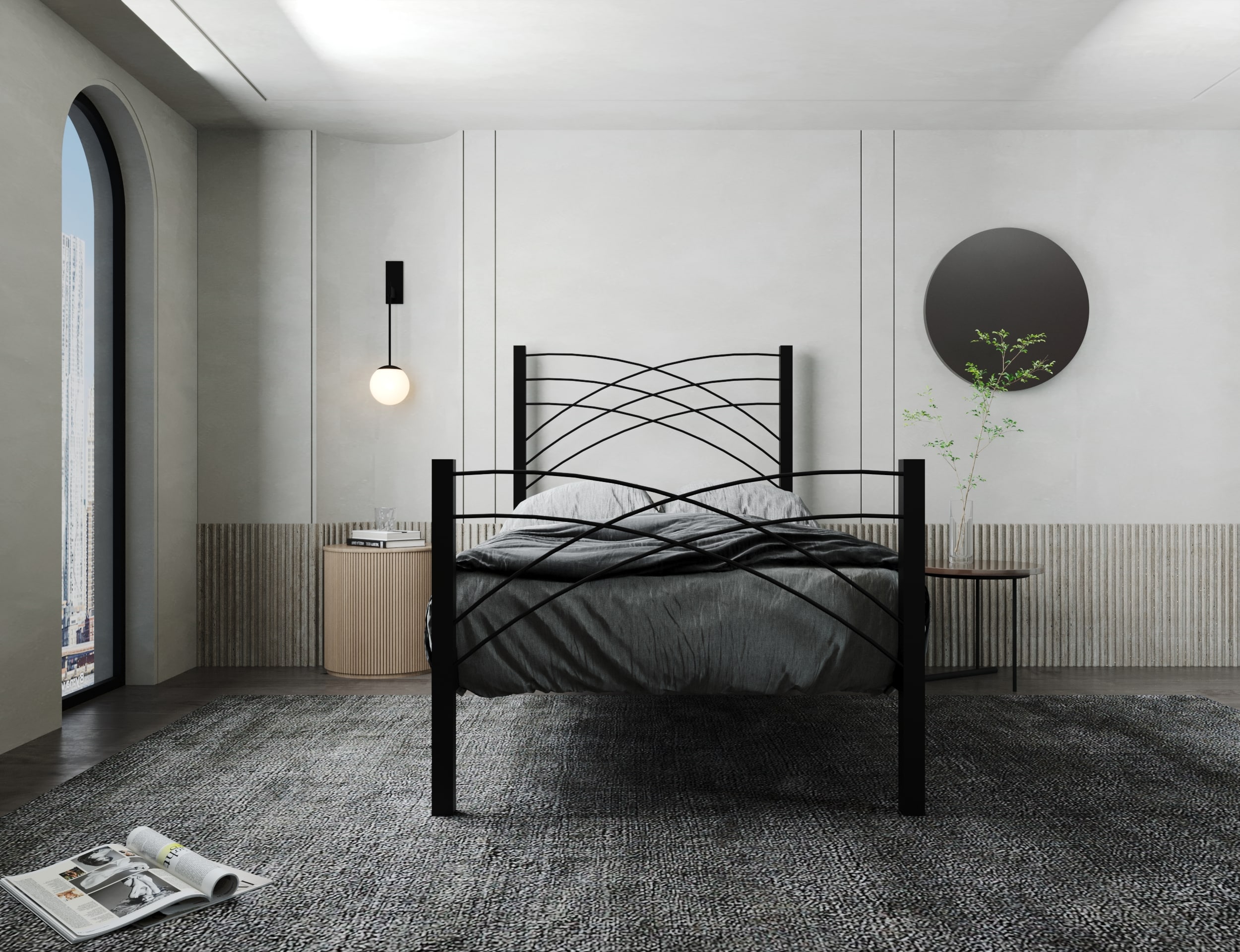 اجعل مساحة نومك مميزة باقتناء سرير مودرن ماكس اورا، سرير حديدي متين باللون الأسود الأنيق مثالي لغرف النوم العصرية وغرف نوم الشباب.