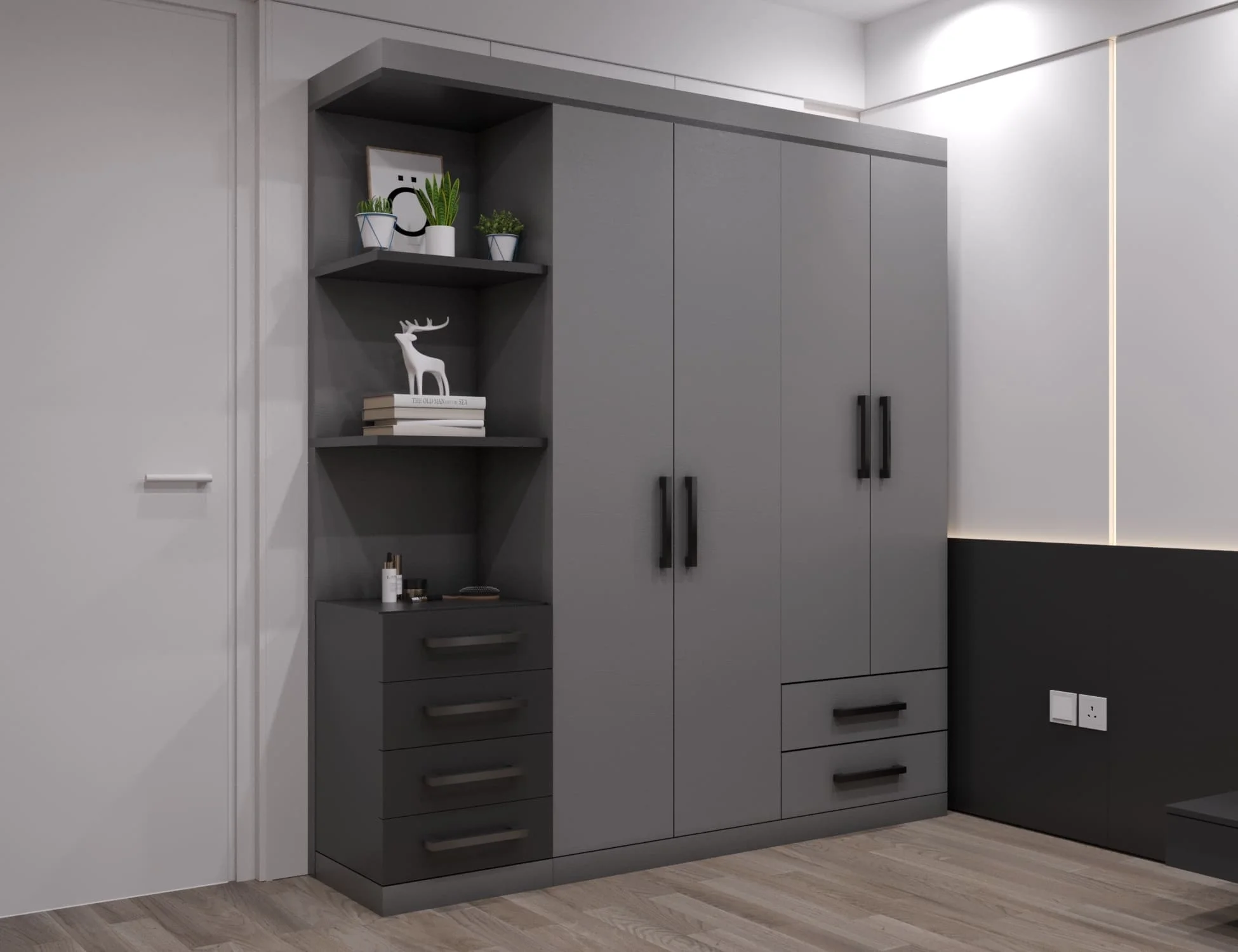 ماكس جوست دولاب مودرن من الخشب باللونين الرصاصي الغامق والأسود